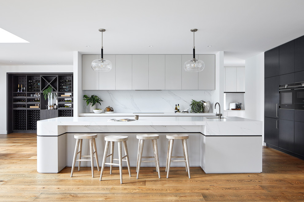 They blend a touch of old with new for a while light bench finishes might be more typical of hamptons style kitchens, this design proves that you can go.