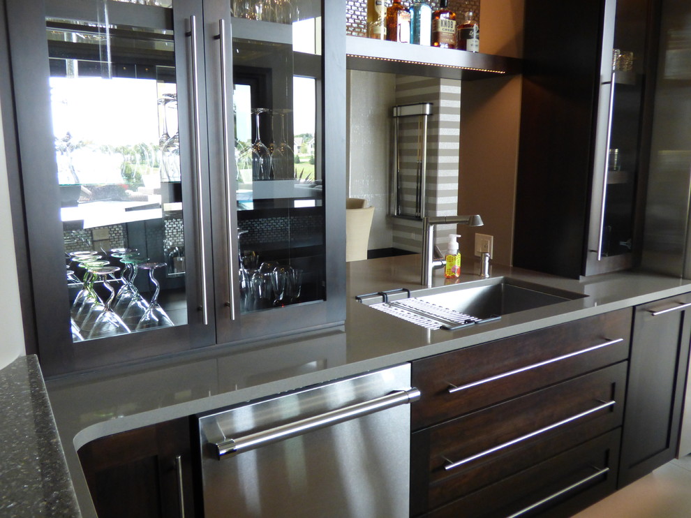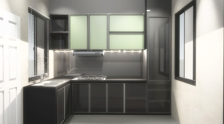 Wet Kitchen Floor. The wet kitchen would also be designed for easy cleaning. The garbage disposal was old. Water was on the kitchen floor. A wet kitchen is where the sink is located (thus the wet reference).