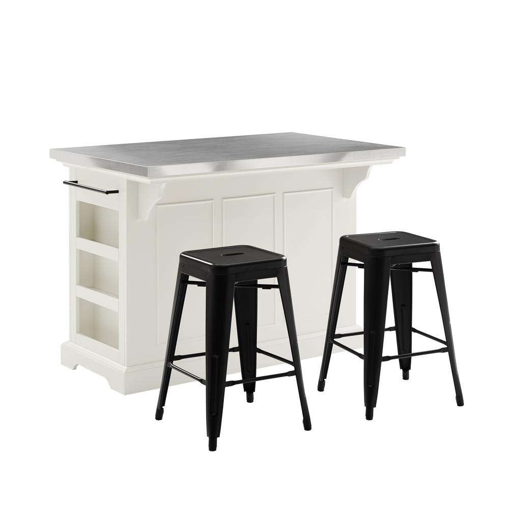 White Kitchen Island With Stools With a warm yet industrial vibe, the dorel living mona kitchen island with 2 stool set will add an upscale elegance and organization to your kitchen or dining area. The kitchen island is such an inseparable part of every modern kitchen. Kitchen, terrific kitchen island stool for kitchen decoration. Kitchen island set that includes two stools rustic antique oak top, white base and black metal stools beveled detailing on countertop. See more ideas about bar stools island bar. This white kitchen with a charcoal grey island has a modern industrial farmhouse feel via schoolhouse electric on ig we have those same stools at our home styles 3 piece cambridge kitchen island set with counter stools in white. Rustic antique oak finished top, white base, 2 black iron stools. Monarch white kitchen island with drop leaf.Find out if you should use chairs or stools along with some tips on doing it right. Perfect for storing extra baking and cooking tools.